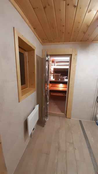 - Покрытие полов входа и предбанника: керамическая, керамогранитная плитка, кафельная плитка. - Полы в парной рекомендуется выкладывать на лаги, которые необходимо устанавливать правильно по уровню. Лаги крепятся к фундаменту при помощи анкеров. Для защиты от гниения под лагами необходимо уложить гидроизоляцию. По периметру лаг необходимо установить плинтус, который будет закрывать стыки и предотвращать попадание влаги на стены.