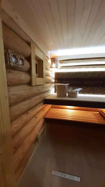 Отделка бани из оцилиндрованного бревна (ОЦБ)