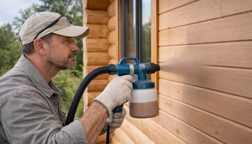 Покраска деревянного дома снаружи цена за м2