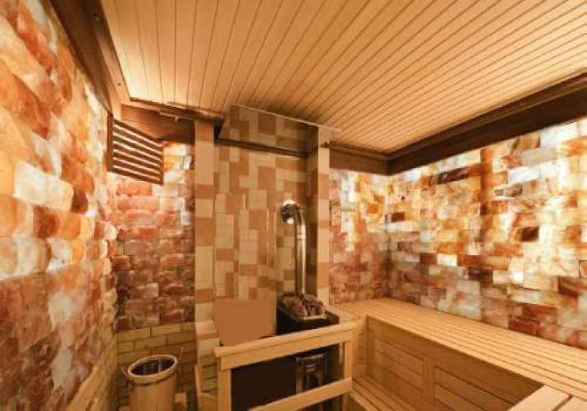 В качестве отделки можно использовать и другие материалы: например, гималайскую гальку, сосновую или березовую кору, а также мраморный блок. На ваш выбор: – обработка кирпичей, блоков, плитки или панелей соляными растворами; – отделка стен и потолка гималайской солью; - декоративная отделка "под камень"; – изготовление декоративных панелей с различным рисунком.