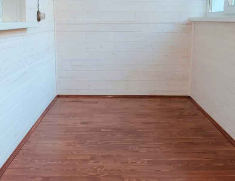 Плинтусы прибиваются под установленными балками. Доски надежно устанавливаются между рейками черепов.